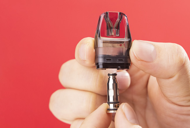 دستگاه پاد و ویپ، دستگاههایی هستند که با نیکوتین مایع کار میکنند. نیکوتین مایع درون مخزنی به نام کارتریج ریخته میشود. در اطراف این کارتریج یک سری سیم پیچهای کوچک قرار گرفتهاند که امکان گرم کردن داخل کارتریج و مایع آن را فراهم میکنند. این سیم پیچها به همراه پنبهای که در انتهای کارتریج قرار گرفتهاند، کویل دستگاه را تشکیل میدهند. در واقع کویل دستگاه، همان سیم پیچ و قطعه پنبهای مانند است که وظیفه تبدیل مایع نیکوتین به بخار را برعهده دارد.