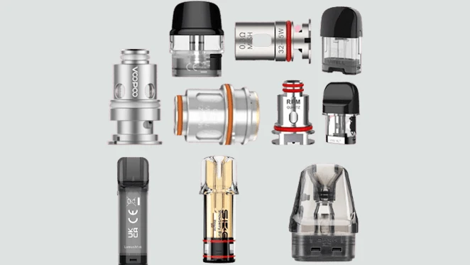 به طور کلی، دو قطعه مصرفی در دستگاههای ویپینگ، کارتریج و کویل است. کارتریج همان مخزنی است که نیکوتین مایع را درون آن قرار میدهید و کویل نیز یک قطعه کوچک به صورت سیم پیچ بوده که در دور کارتریج قرار میگیرد و میتواند مایع داخل کارتریج را به بخار تبدیل کند. جویس یک مایع برای دستگاه ویپ بوده که بر پایه نیکوتین و دو حامل PG و VG تولید میشود و سالت نیکوتین یک مایع برای دستگاه پاد بوده که بر پایه سالت نیکوتین و دو حامل PG و VG تولید میگردد.
